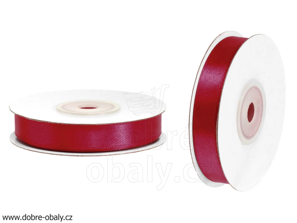 Textilní atlasová stuha v elegantní bordové barvě. Rubová i lícová je velmi kvalitně a jemně tkaná, lemovaná na okrajích (netřepí se). Rozměry: šířka 1,2 cm, návin 25 m.