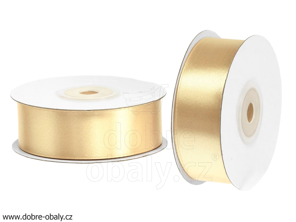 Textilní atlasová stuha v elegantní zlaté barvě. Rubová i lícová je velmi kvalitně a jemně tkaná, lemovaná na okrajích (netřepí se). Rozměry: šířka 2,5 cm, návin 25 m.