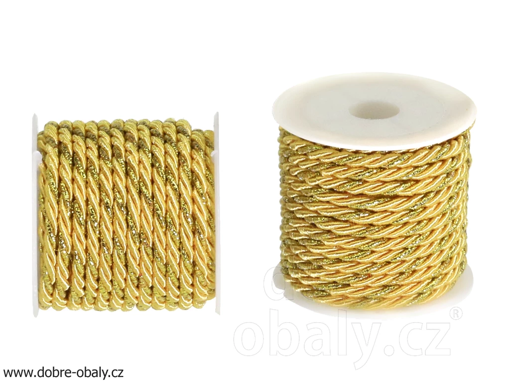 Velmi kvalitní pevný dekorační provázek je ideální do svátečních a svatebních dekorací, balení dárků nebo svatebních výslužek. Rozměry: průměr 3 mm, délka návinu 5 m. Navinutý na plastové cívce o průměru 48 mm (vnitřní průměr dutinky 10 mm), výška 44 mm.