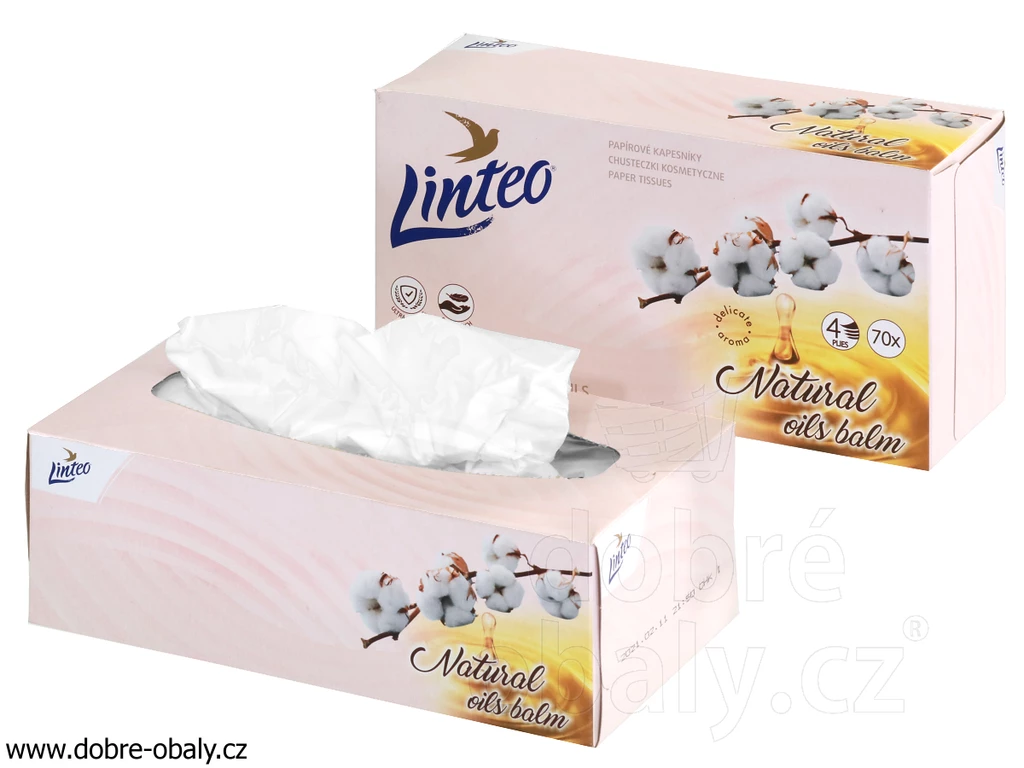 Jemné složení v kombinaci s balzámem poskytuje uklidující péči. Balzám z přírodního bavlníkového oleje a skvalanu obsahuje složky, které mají schopnost chránit, revitalizovat, hydratovat a hojit poškozenou pokožku, zklidňuje a zabraňuje zarudnutí. Balení 4-vrstvých kapesníčků obsahuje 70 ks, tolerance ±5%. Rozměry boxu: šířka 220 mm, délka 115 mm, výška 75 mm. Rozměry ubrousku 210 x 210 mm.