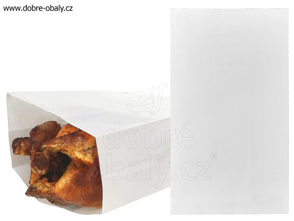 Kvalitní, nepromastitelný a vodotěsný sáček, bělený papír kombinovaný s vloženou PE fólií. Sáček je možné použít pro ohřev v mikrovlnné troubě. Rozměry: šířka 150 mm, dvě boční záložky o šířce 80 mm, výška 300 mm.