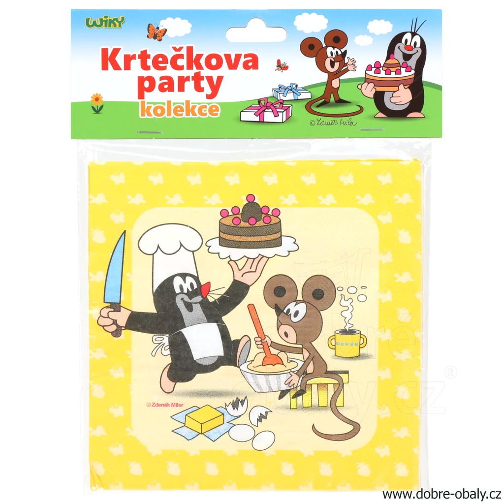 Kvalitní 3-vrstvé ubrousky s atraktivním potiskem krtečka a jeho kamarádů jsou na omak velmi příjemné a dobře sají. Ubrousky jsou vhodné také na decoupage (ubrouskovou techniku). Doporučujeme kombinovat s talířky a kelímky ve stejném designu. Rozměry: 33 x 33 cm, složené 16,5 x 16,5 cm.