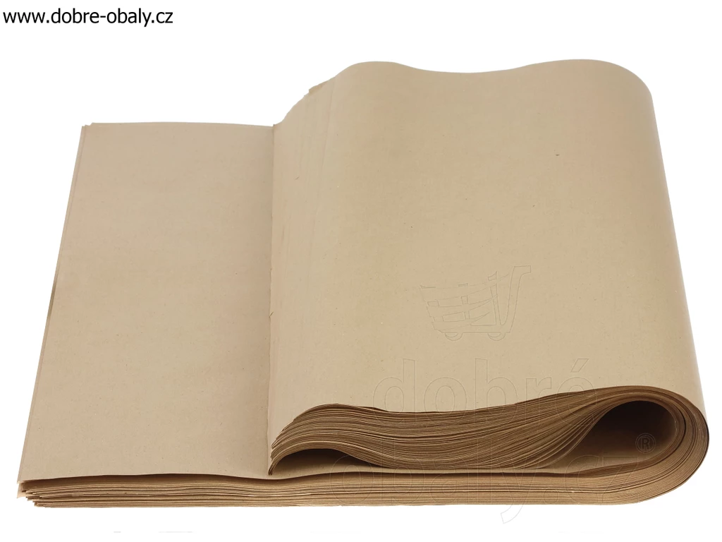 Velmi pevný balicí papír v přírodní hnědé barvě ideální na balení zboží i těžších předmětů, nebo jako výplň balíků. Papír se snadno ohýbá, je tužší a velmi pevný, dobře popisovatelný, jednostranně hlazený s výrazně hladkou vrchní stranou. Rozměr archu 52 x 75 cm, gramáž papíru je 70 g/m².