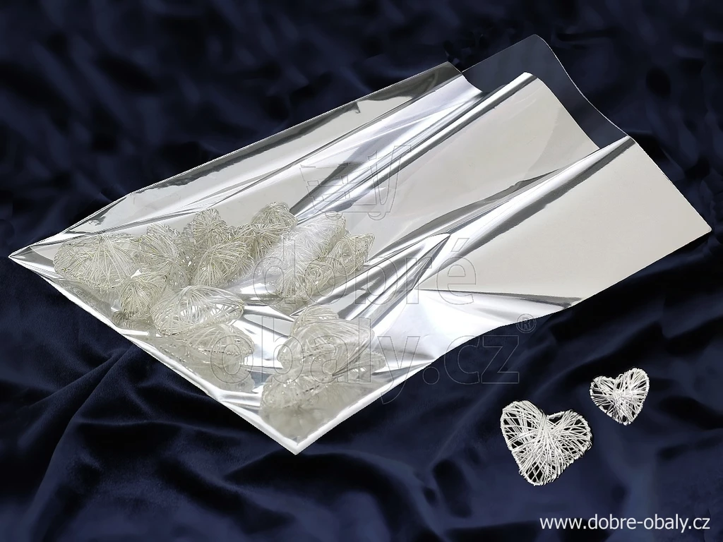 Kvalitní celofánový dárkový sáček. Zadní strana sáčku je stříbrná, přední strana zcela čirá. Sáček má svařované dno. Rozměry: šířka 30 cm, výška 50 cm, síla fólie 30 mikronů. Materiál: BOPP fólie - fólie je určená pro přímý styk s potravinami a je zdravotně nezávadná.