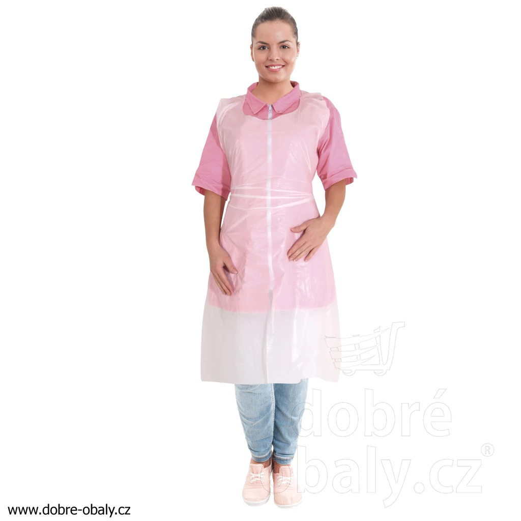 Kvalitní igelitové jednorázové zástěry pro použití v potravinářské výrobě. Vhodné pro systém HACCP. Rozměry: šířka 81cm, délka 125cm, síla fólie 15 mikronů.